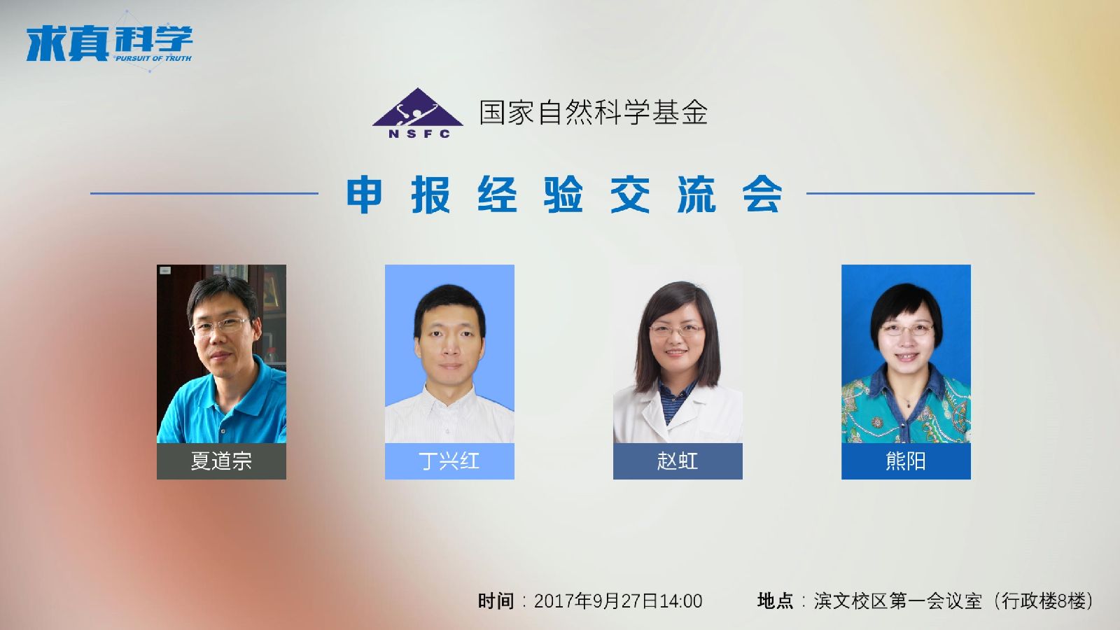 各学院(部、所、中心)、附属医院:为了做好2018年度国家自然科学基金申报工作,进一步提高项目申报质量和水平,学校科研处定于9月27日下午在滨文校区第一会议室召开国家自然科学基金申报经验交流会。邀请获得国家自然科学基金项目立项的负责人,结合自身经验和心得,就如何确立科研方向、研究目标,如何组建研究团队、积累基础等方面进行经验交流,欢迎广大教师、科研人员参加。