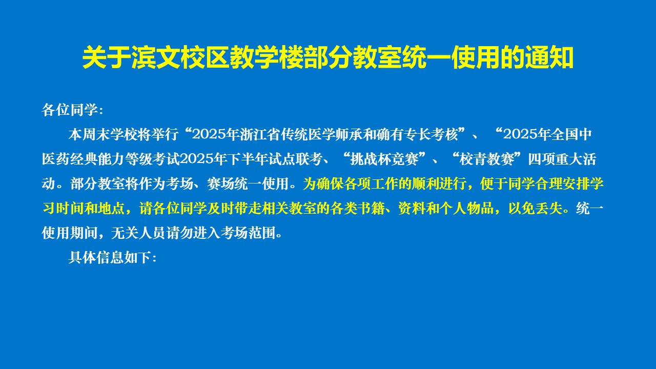 转发 关于滨文校区教学楼部分教室统一使用的通知