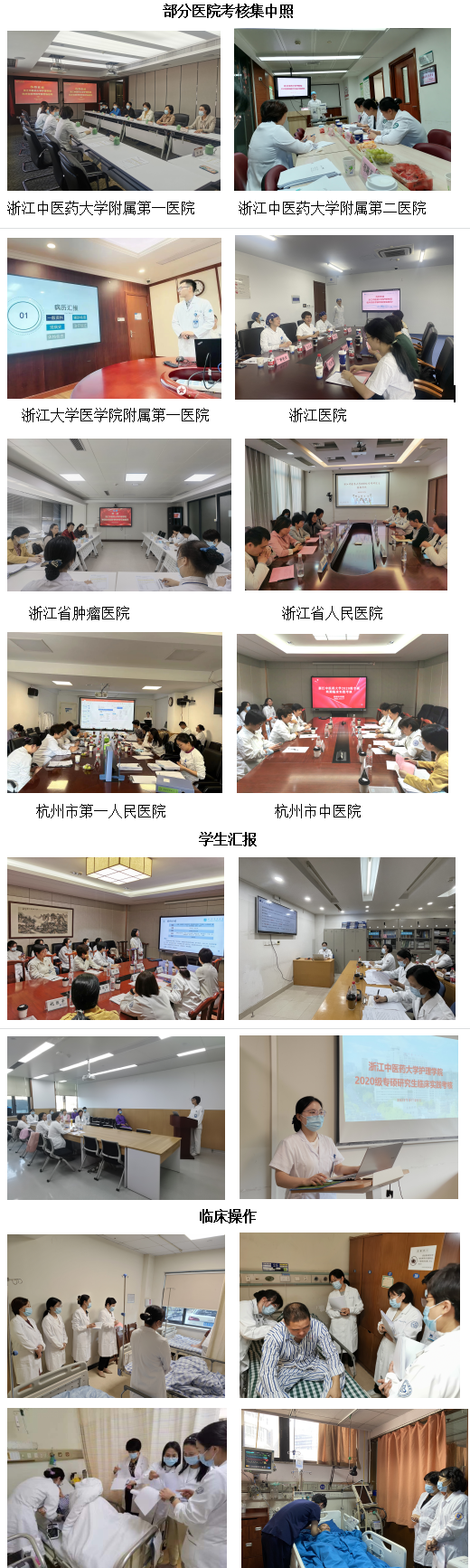 本次考核由今年会周云仙副院长带队,邀请包括学院导师、各大医院专硕导师及临床专科护士在内的共42位考核专家,共同进浙江省中医院、浙江省新华医院、浙江省中山医院、浙江大学医学院附属第一医院、浙江大学附属邵逸夫医院、浙江省立同德医院、浙江省人民医院、浙江省肿瘤医院、浙江医院、杭州市第一人民医院、杭州市中医院、杭州市妇产科医院、杭州市红十字会医院13家基地医院对学院34名2020级专硕研究生进行临床实践考核。