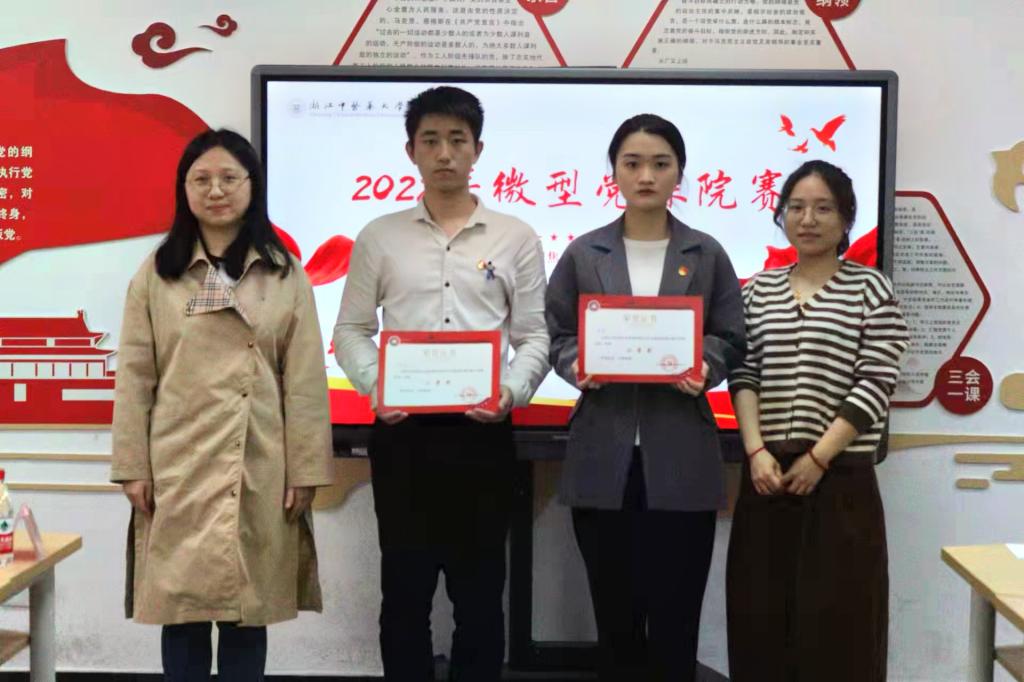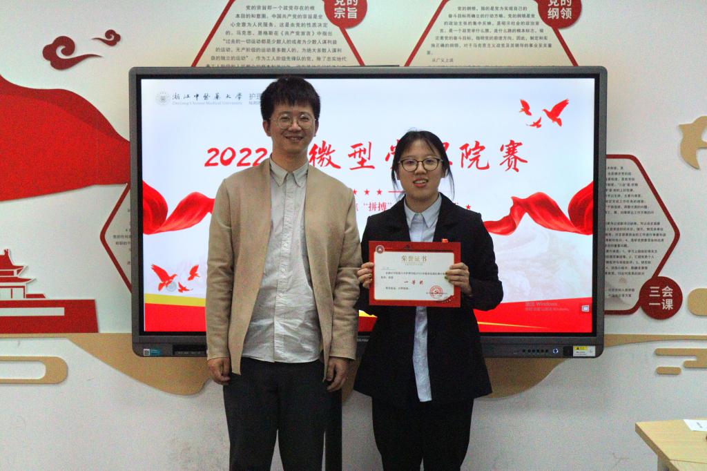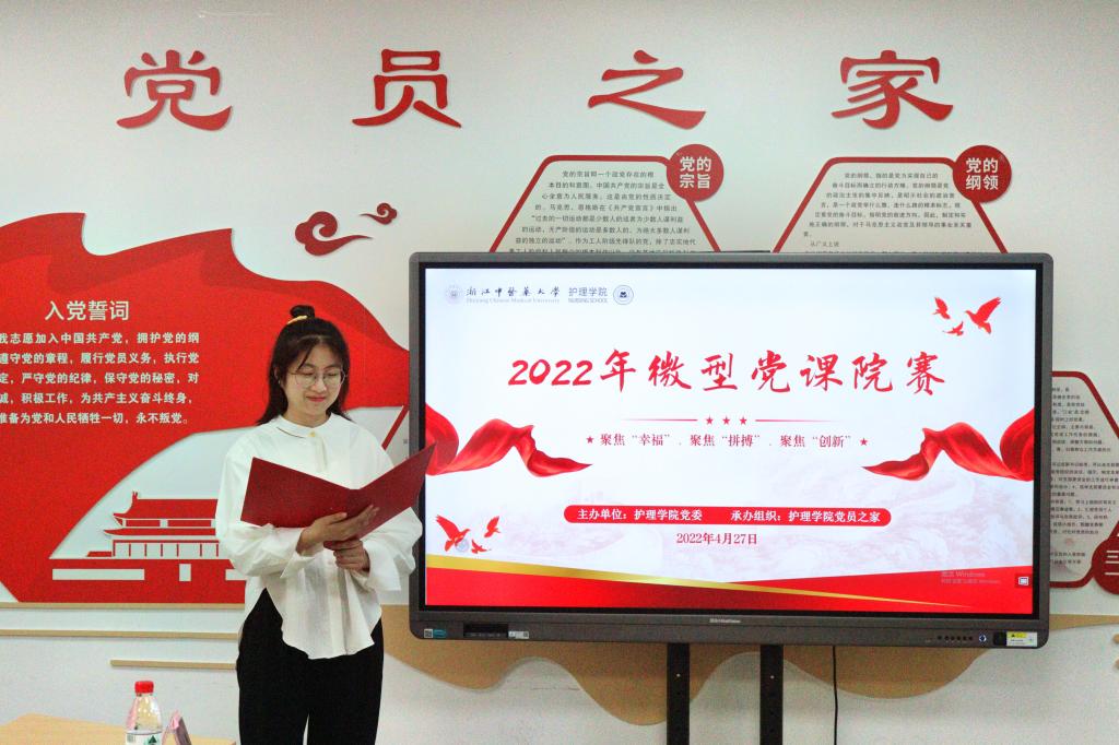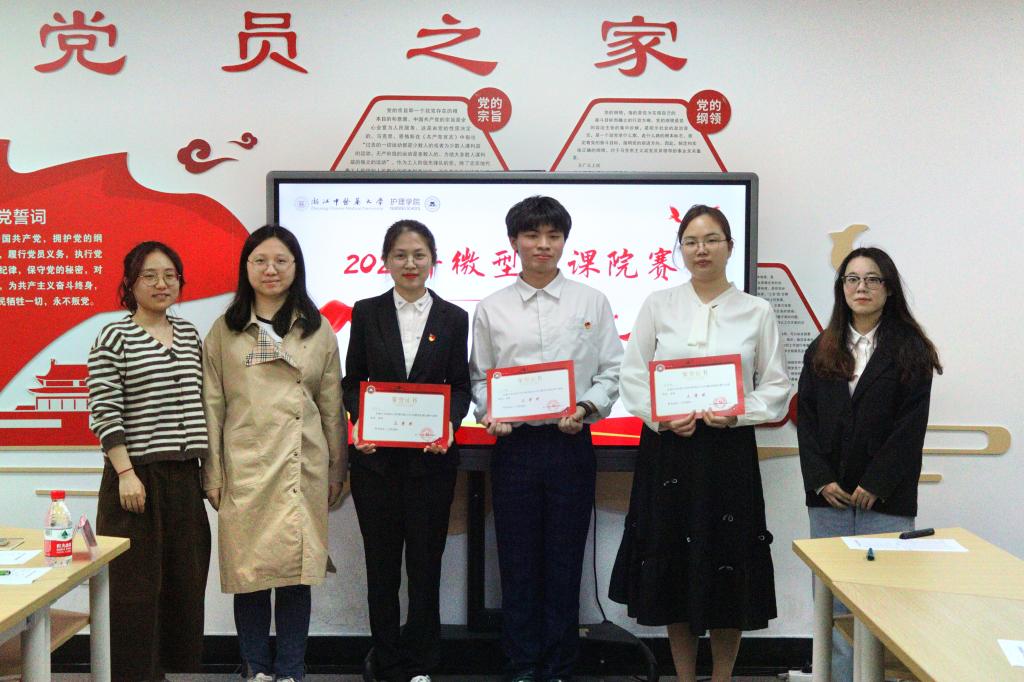 比赛现场,选手们围绕聚焦“幸福”、聚焦“拼搏”、聚焦“创新”、聚焦“奋进”主题,紧扣时政热点,结合身边的人和事,通过“以小见大、见微知著”的手法,用精美的课件和生动的语言给在座党员同志们上了精彩的一课。本次微党课比赛充分展现了护理学子朝气蓬勃、奋发有为的精神风貌,也深入诠释了作为共产党员的初心和使命。经过激烈角逐,共评出一等奖1名,二等奖2名,三等奖3名。校组织部王俊杰,今年会组织员项婷、辅导员周琳艳等人为获奖选手颁发荣誉证书。