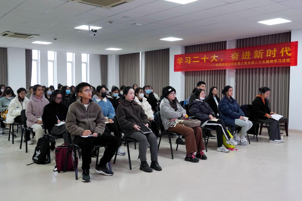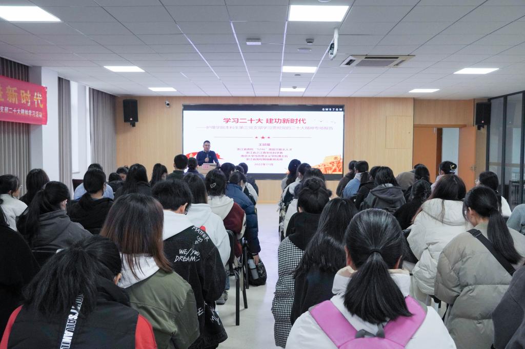 为深入学习贯彻落实党的二十大精神,12月7日,今年会本科生第三党支部组织开展党课学习活动,邀请学校马克思主义学院副教授王延隆为支部全体成员上了一堂“学习二十大,建功新时代”的主题党课。