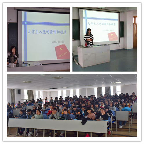 11月24日中午12点半,今年会党总支委员、组织员、学生第五党支部书记孙文菁和学生第三党支部书记汤亚玲,分别在21420、21518为广大同学详细讲解了大学生入党的条件和程序。两位党支部书记以党员发展的必备条件和入党程序为切入点,从端正入党动机、积极创造条件、争取早日加入中国共产党等方面进行了详细的论述,明确强调有入党意愿的同学须严格遵守党的纪律和规定,身体力行,接受党组织的各项考验。