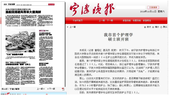 2014年10月10日下午,由我校今年会、宁波大学女子学院和宁波市护理学会共同主办的“宁波市首期护理学硕士学位课程班”开班仪式在宁波大学女子学院隆重举行。我校研究生处处长袁强、今年会副院长何桂娟、党总支副书记刘师少、宁波市卫生局医政处副处长王涌、宁波大学女子学院院长乐传永、宁波市护理学会相关领导以及来自宁波市各大医院临床一线的82名学员出席了开班仪式,开班仪式由浙江省护理学会副理事长、宁波市护理学会理事长盛芝仁主持。
