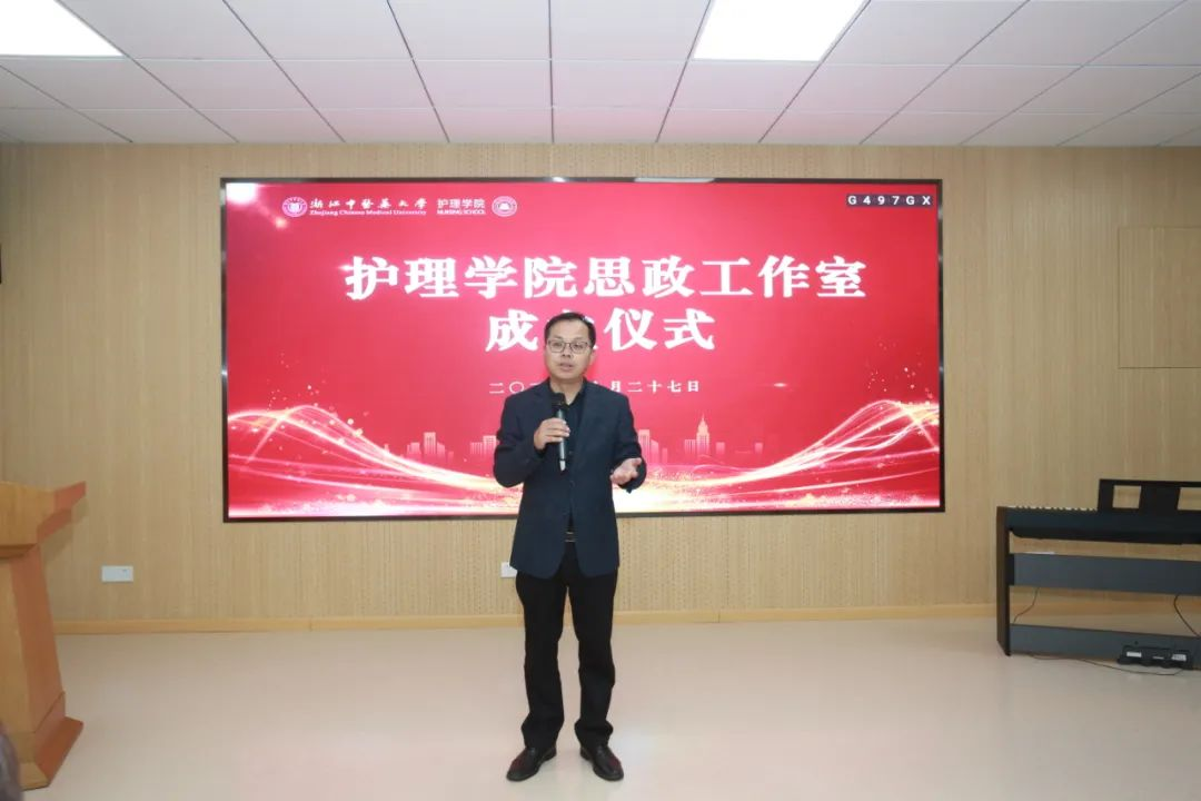 在成立仪式上,今年会党委书记李海滨表示,组建思政工作室是学院党委认真落实学校一流党建工程要求的积极响应,也是进一步擦亮最美护理党建底色的重要抓手。从思政工作室的筹划到成立,今年会党委全程参与相关指导工作,希望通过载体建设,新老融合,实现提升思政队伍能力建设的目的;通过资源整合,内外交互,实现提升三全育人参与度的目的;通过打造品牌,示范引领,实现助推学院工作全域提升的目的。