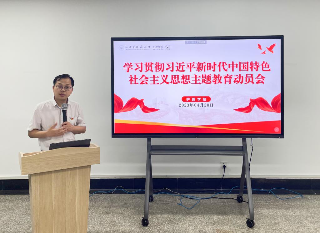 4月20日晚,护理学院召开学习贯彻习近平新时代中国特色社会主义思想主题教育动员大会,深入学习贯彻习近平总书记在中央主题教育工作会议上的重要讲话精神,认真贯彻落实党中央关于在全党深入开展学习贯彻习近平新时代中国特色社会主义思想主题教育的意见,按照党中央和省委、浙江中医药大学党委工作部署,对开展主题教育进行动员部署。学院党委书记李海滨作动员讲话,学院党政领导班子成员、全体教师党员以及学生党员代表等50余人参加动员大会。