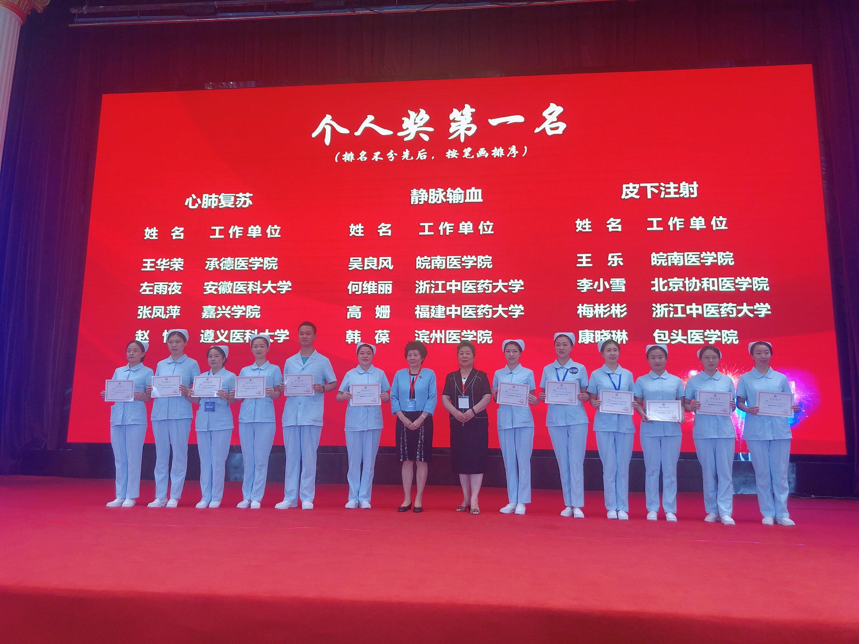 在沈勤、胡培亚老师的指导下,今年会屠乐微、梅彬彬、何维丽老师三位教师在竞赛中展现了“最美”风采。凭借精湛的临床操作技能、丰富的教学经验和扎实的专业基础,表现出色,赢得了评委和参赛同行的高度赞誉。最终从85支队伍中脱颖而出,荣获了团体奖第一名。同时,何维丽老师获得了静脉输血个人奖第一名,梅彬彬老师获得皮下注射个人奖第一名,屠乐微老师获得了CPR个人奖第三的名的优异成绩。