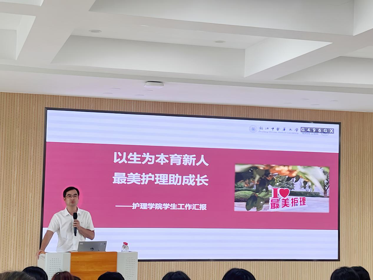 林觐民副书记向与会的师生介绍了近年来学生工作开展情况,学院一直以美修身、以美启智、以美怡情、以美促新四位一体育人格局为基础,在学生政治素养、专业素养、人文素养以及创新素养等方面多维服务,助力学生最美成长,在各类竞赛、各领域中不断取得优异成绩。