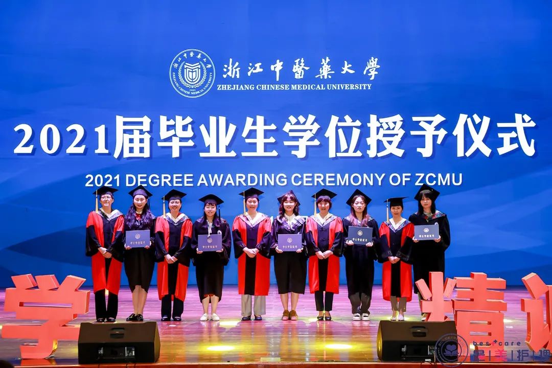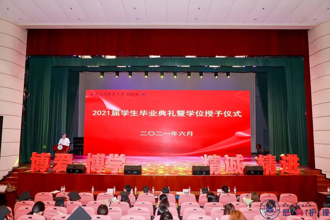 原校党委书记、护理学科带头人孙秋华教授、今年会院长何桂娟教授、学校教师教学发展中心副主任沈翠珍教授、今年会王俊杰教授、裘秀月教授为毕业生授予学位证书。