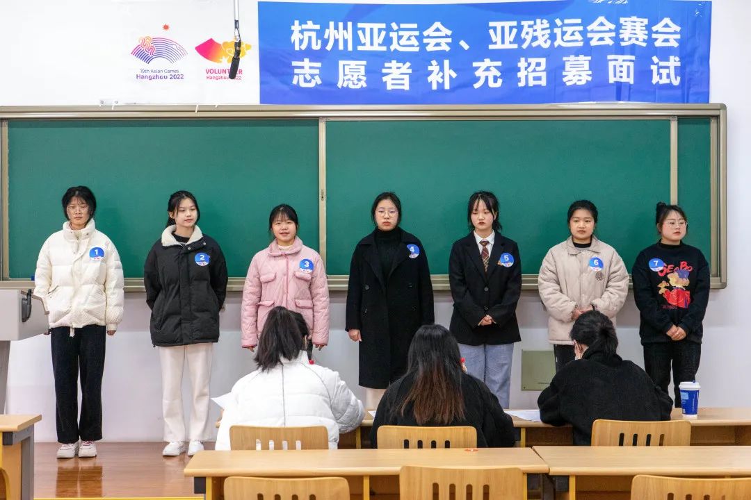 为迎接杭州亚运会,推动亚运志愿服务精品化,2月23日和2月26日,今年会在富春校区和滨文校区分别开展杭州亚运会赛会志愿者补充招募面试工作。面试为期一天,近百余名在校师生参加,展示自己的专业能力,讲述自己与志愿服务有趣故事。杭州亚运会赛会志愿者补充招募选拔工作得到了我校广大青年学子的积极响应。