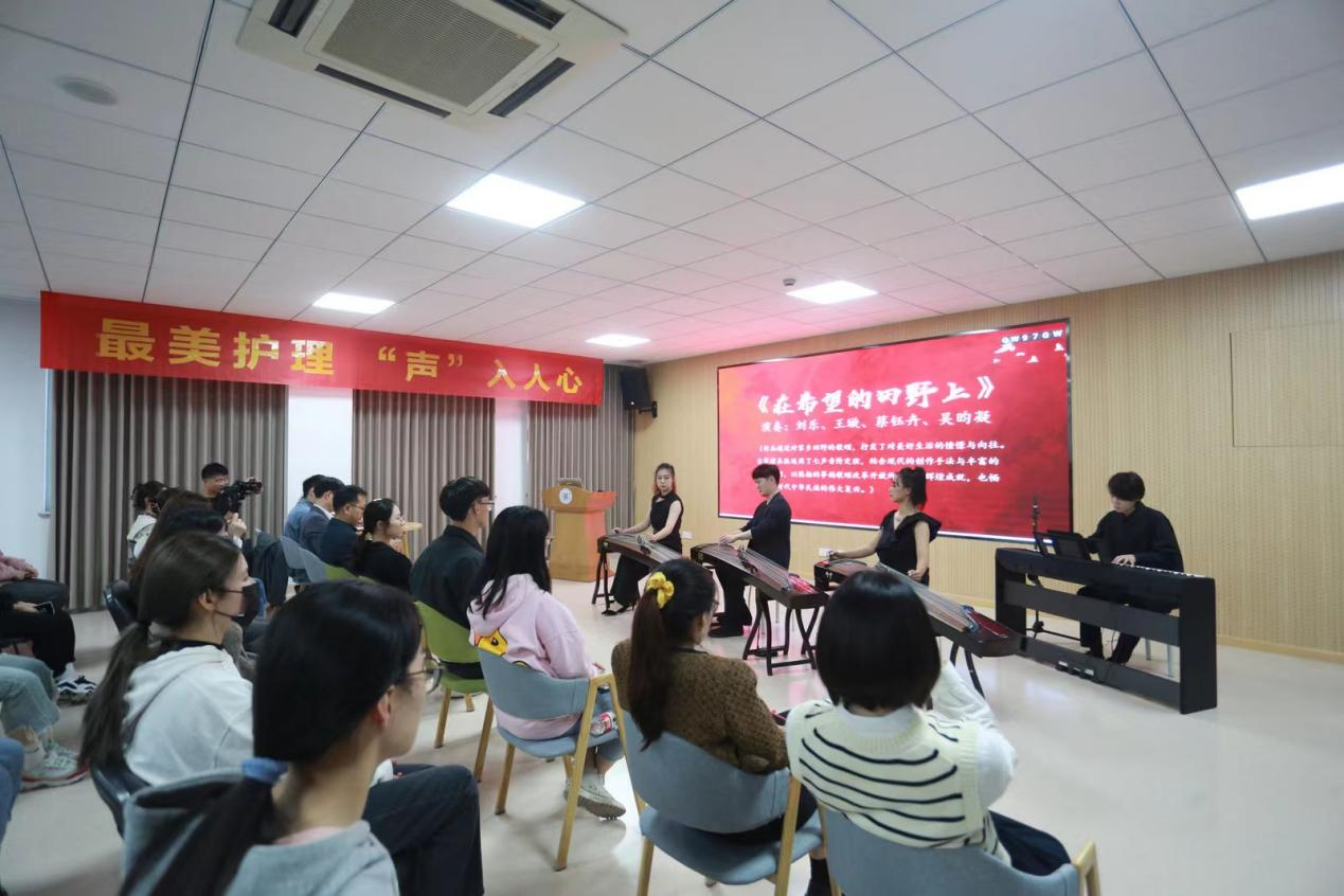 现场,一首古朴悠扬的著名古筝曲《渔舟唱晚》,奏响了“落霞与孤鹜齐飞,秋水共长天一色”的悠远旋律,拉开了“最美护理‘声’入人心·音乐思政课”的帷幕。五千年的华夏文明孕育了博大精深的人文传统,成就了底蕴厚重的国乐艺术,同时也深层次涵养着社会主义核心价值观,铸就了中华民族的精神谱系。中国共产党谱写的壮丽史诗在一篇又一篇的红色乐章中淋漓呈现,砥砺亿万中华儿女踔厉奋发,勇毅前行!