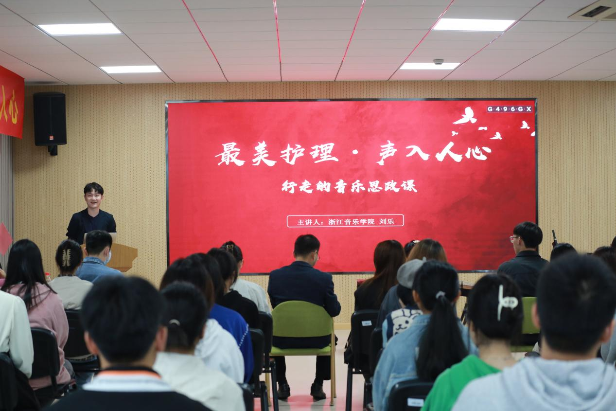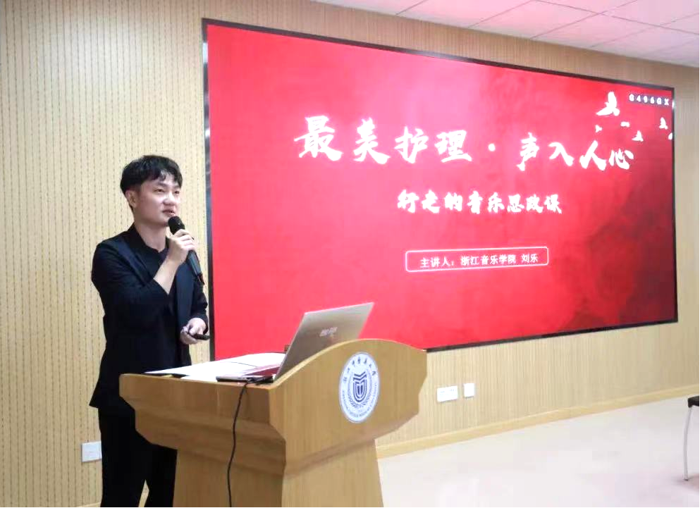 10月27日下午,作为今年会“光影驿站”思政工作室成立后的首场活动,工作室携手浙江音乐学院国乐系推出了“最美护理‘声’入人心·‘一堂行走的’音乐思政课”,特别邀请浙江音乐学院国乐系副主任刘乐教授为师生带来一场激情澎湃的“红色音乐思政课”,以润物细无声的方式“声”入人心。
