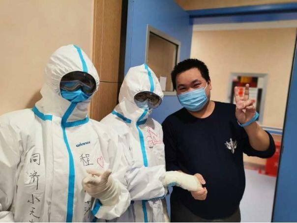图3:最美护理人与新冠肺炎康复患者合照留念