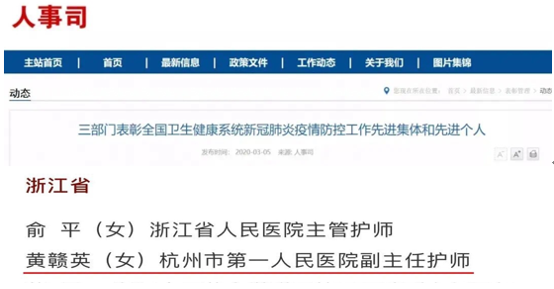 图1:黄赣英荣获全国卫生健康系统新冠状肺炎疫情防控工作“先进个人”