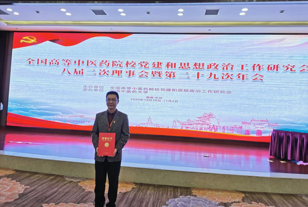 11月1日,全国高等中医药院校党建和思想政治工作研究会第29次年会在湖南长沙举行。本次会议由湖南中医药大学承办。本次会议表彰了优秀党务工作者,今年会党总支书记方年根教授荣获优秀党务工作者称号。