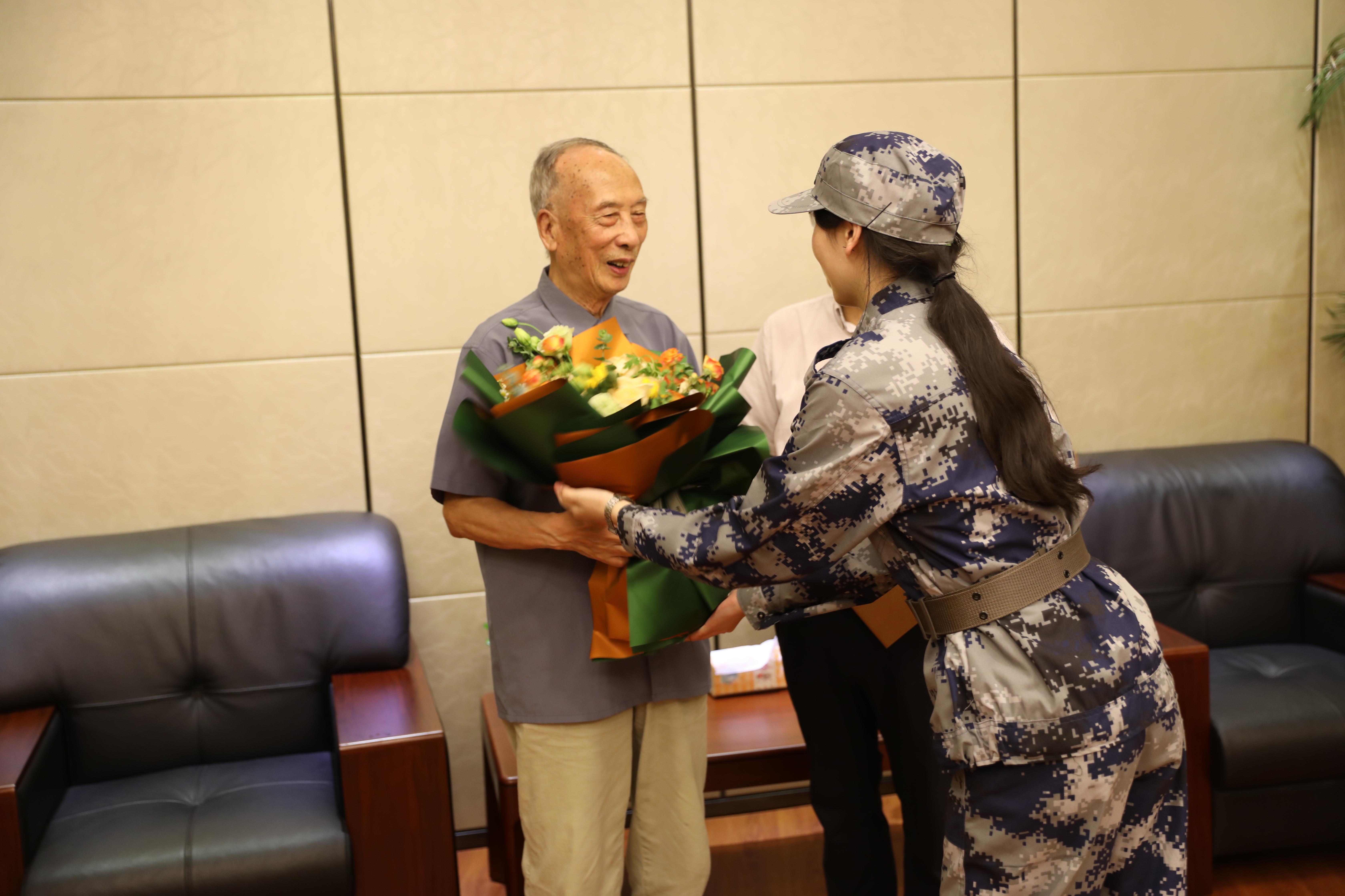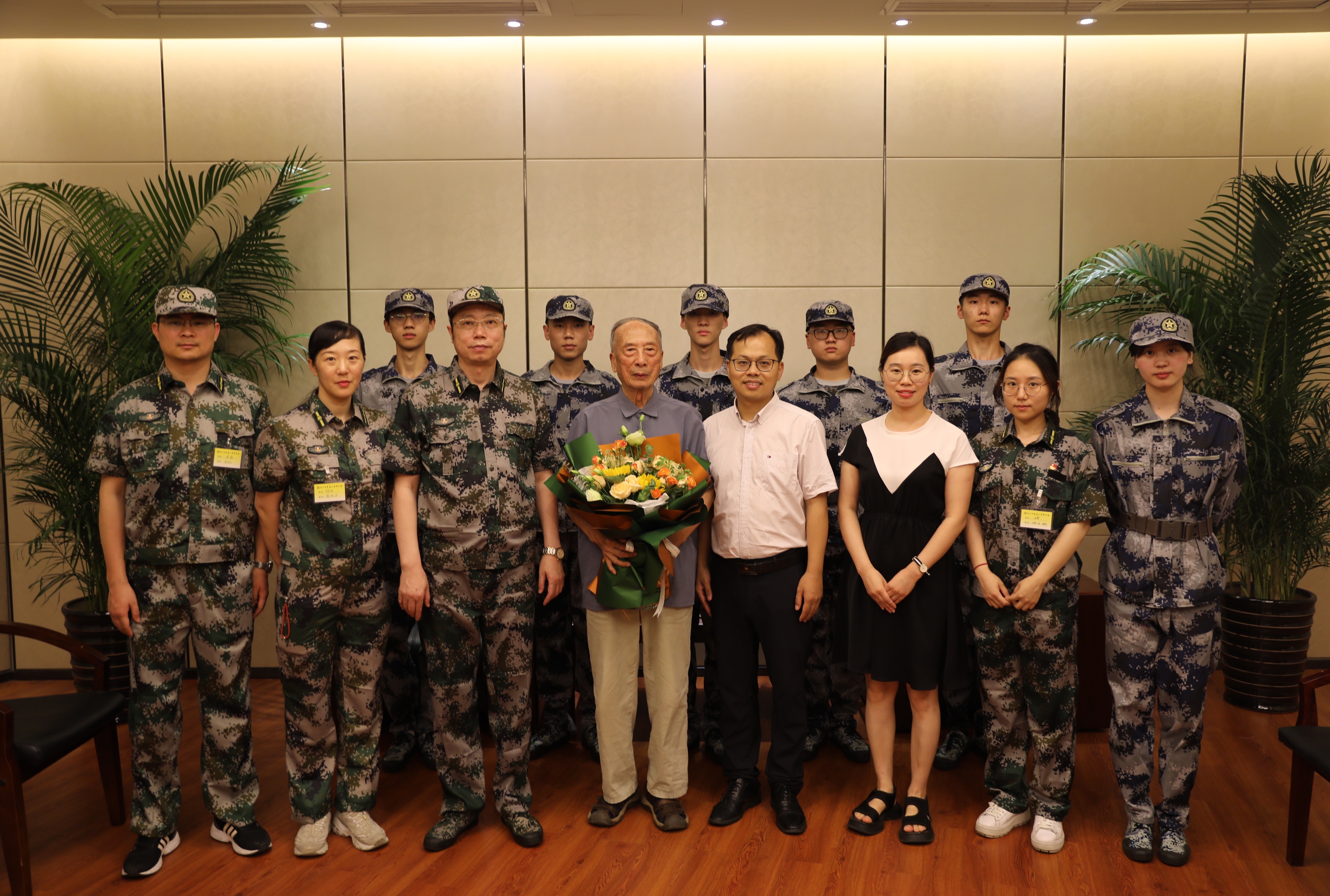 7月2日晚,“两弹一星”研究员孙振锄大校应邀来今年会官网,为滨文、富春校区6841名2020和2021级军训学生作讲座。学校党委副书记张光霁、今年会党委书记李海滨、学工部副部长胡洁等人热情接待了孙老先生。