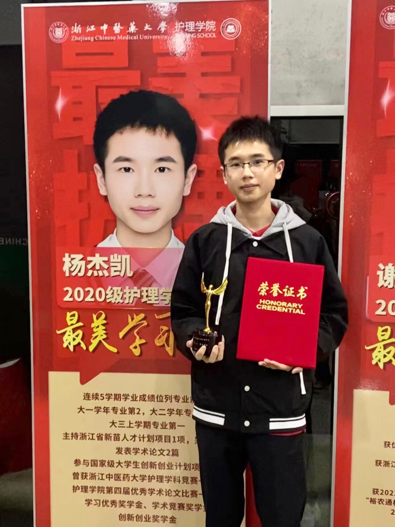 “其实我的大学三年也没那么顺利。”杨杰凯回想这三年,在他心里一直有个遗憾。大三这年,杨杰凯主动报名参加浙江省大学生护理竞赛,这是全省护理学子向往的竞赛平台,他们面对的是来自全省十几所高校的竞赛选手,他和队友深知,要付出比常人更多的时间和精力,才有获胜的把握。从今年2月份至5月份,整整三个多月的时间,他泡在实验室里练习CPR技能操作,撰写项目书。每天熬至凌晨已成为生活的习惯,“夜里从实验室出来还要赶着回寝室修改研究计划书,有些时候在电脑上打字的手都会抖。”杨杰凯回想那段备赛期间的日子。然而,最终的结果是,他们只取得了铜奖,“颁奖的时候,看着铜奖的获奖名单下面写着我们队伍,大家都沉默了,我当时心里想的就是特别对不起指导老师马老师,辜负了老师和朋友们的期待。”但其实,哪有努力了就一定会成功的事,“我相信努力不一定会成功,但一定不会后悔,知不足而奋进,未来我会更加努力。”杨杰凯笑着说道。